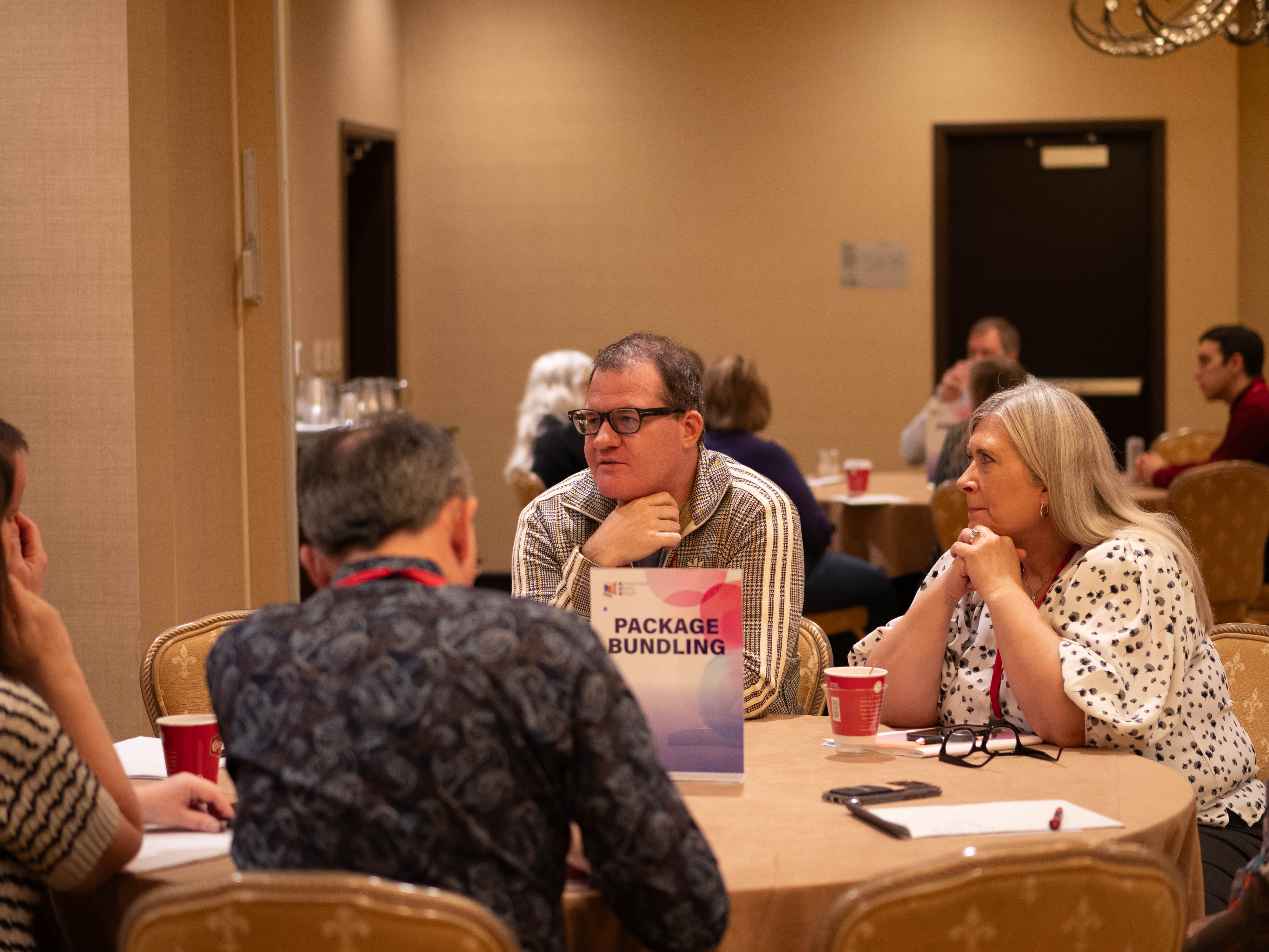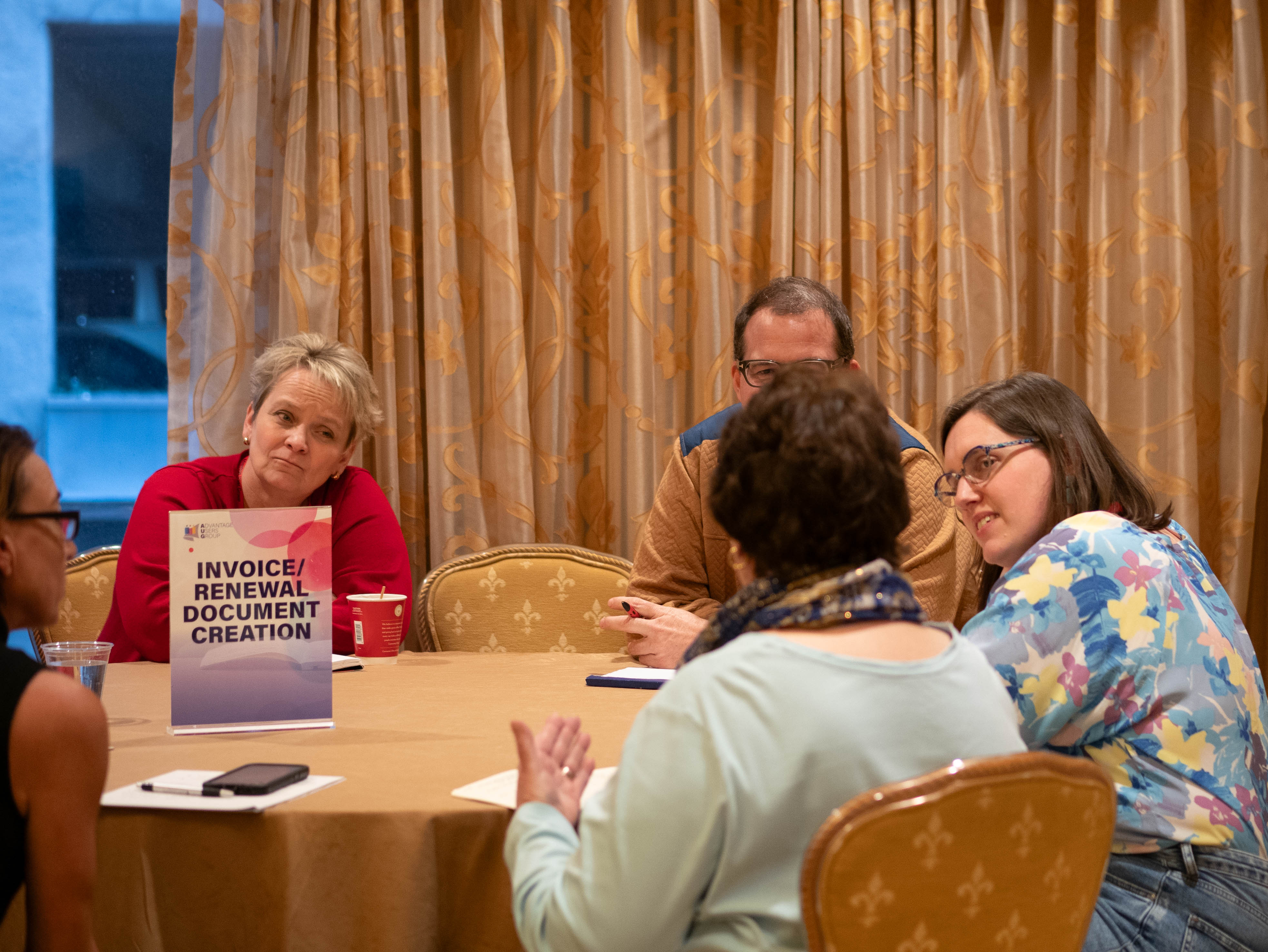 We took a short break, then resumed the day’s activities with Table Topics: groups of clients gathered to share tips and best practices on Advantage and related subjects. This session focused on critical Advantage topics such as workflow rules, scripts, tax handling, and invoice document creation.
